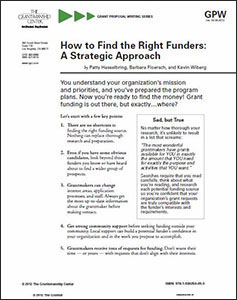 Get serious about finding the right funders! Understand the research tools and how to use them, the best ways to organize a search, and how to manage the information you find. 19 pages, includes 3 electronic forms!