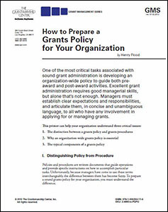 Good management skills alone won't ensure excellent grant administration. An organization-wide policy is essential. You must establish clear expectations and responsibilities, and articulate them in concise and unambiguous language. This 17-page article shows you how, and includes two sample policies.