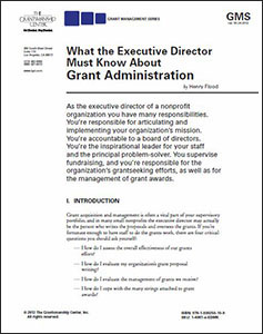 Securing and managing grants is a vital part of the Executive Director's responsibility. But how can an ED assess the effectiveness of the grants effort, evaluate proposal writing, evaluate grant management, and effectively cope with the strings attached to grant awards? This 18-page article covers all the bases and provides 5 helpful electronic forms to help the ED keep the process on track.